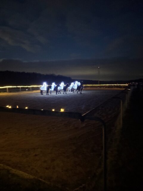 Am Freitag Abend fand unsere alljährliche Weihnachtsfeier statt. Erstmalig gab es dieses Jahr eine Vorführung von unseren Einstellern. Unter der Leitung von Lea Rupprecht haben sich ein paar unserer Einsteller zusammengefunden und eine ganz wunderbare Quadrille einstudiert und am Abend in beleuchteten Kostümen vorgeführt. Es war ein magischer Augenblick und wunderschön anzusehen. Wir bedanken uns bei Doris Schult, Rita Lenz, Heike Anic, Sandra Geier, Jane Ralph, Nora Taschew, Claire Bornkessel und besonders bei Lea Rupprecht für die tolle Aufführung!